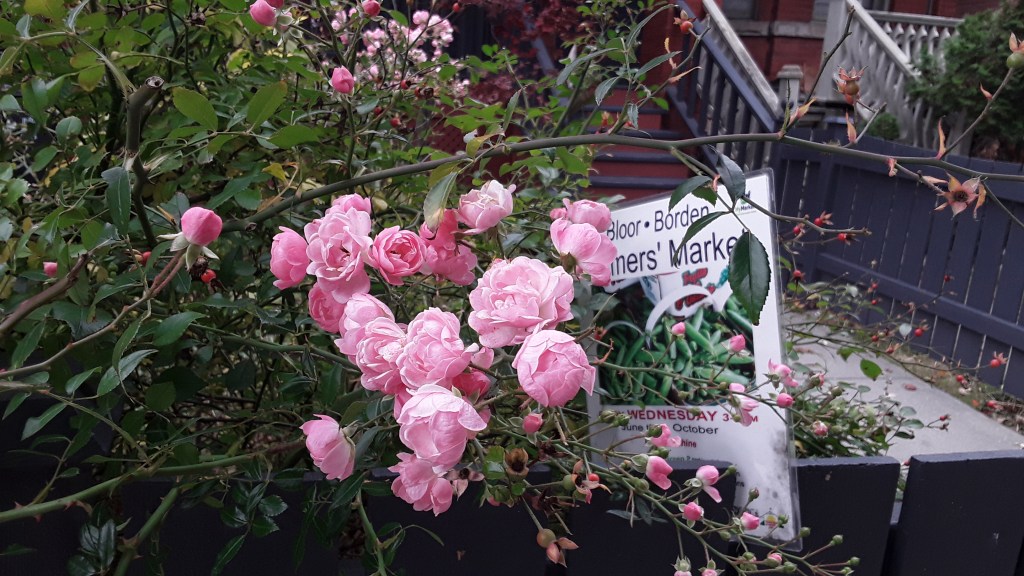 It is kinda weird, this compulsion I have to leave the serenity of my lakeside home and go willingly to the insane intensity that is Toronto. From my deck I talk on the phone to my friends there and I can hear them and imagine them, in their homes on the streets I know so well. I can almost smell it, feel the warm humid air, almost believe it exists in my absence. But no, I actually have to go there, fly above the planet and watch the earth moving below me from the window of the plane, feel the thrum of the engines confirming I am hurtling through space and time toward my destination. I get off the plane and immediately I feel it. I am in a different time zone, different climate, a whole different attitude. I am happy to set foot in my old hometown, yet after confirming it really is still here, I am tempted to turn around and go home, to my chosen home, but of course I don’t. I board a TTC bus and soon I am zooming along the Bloor subway line, an immediate immersion into the gritty city. I emerge into my old hood and pull my convenient carry on through the brightly lit and littered downtown streets. It is a warm evening and the restaurant patios and bookstores are buzzing. The angry sounds of traffic, the smell of cigarettes and pot and garbage, the lovely singing of a busker all welcome me. I turn the corner onto the street where my mother lived for forty years and where our family home remains. Ridiculously overgrown feathery cosmos tower over me and block my path. Dahlias and climbing roses spill over fences fronting the narrow brick Victorian era homes. Toronto is a surprisingly verdant city, gardens are abundant. The hot summer days and warm nights make for huge blossoms and creeping vegetation.